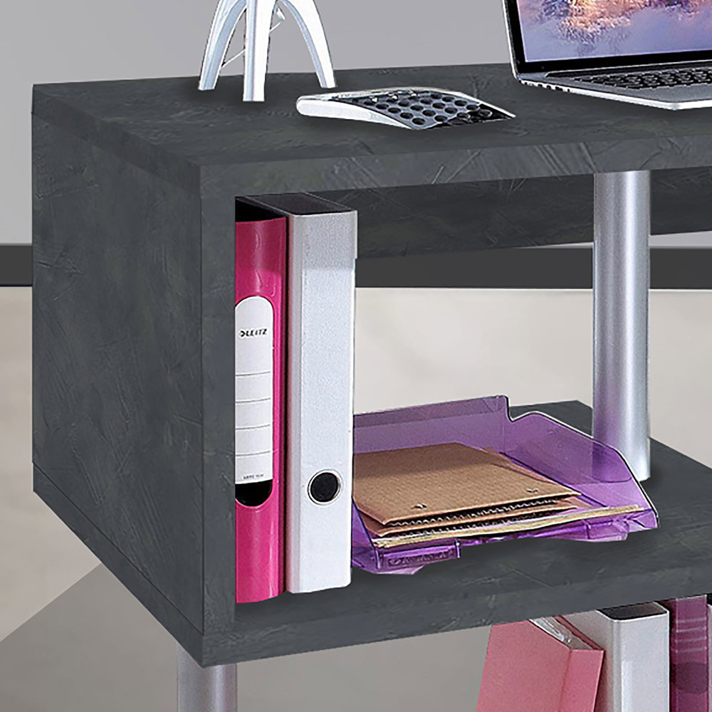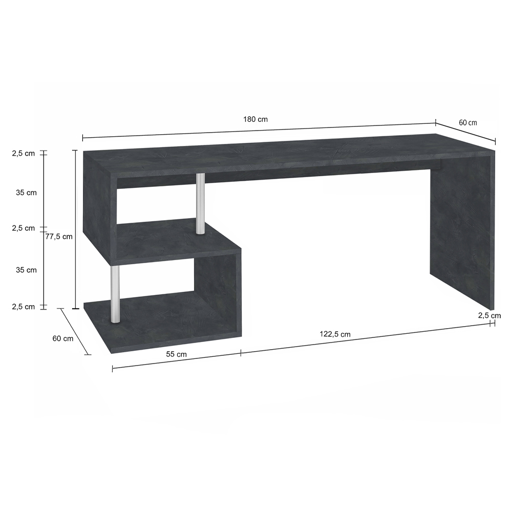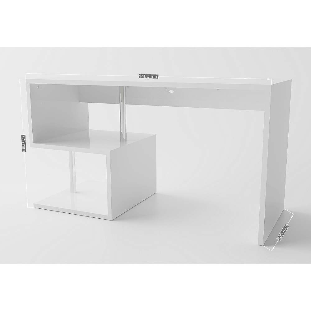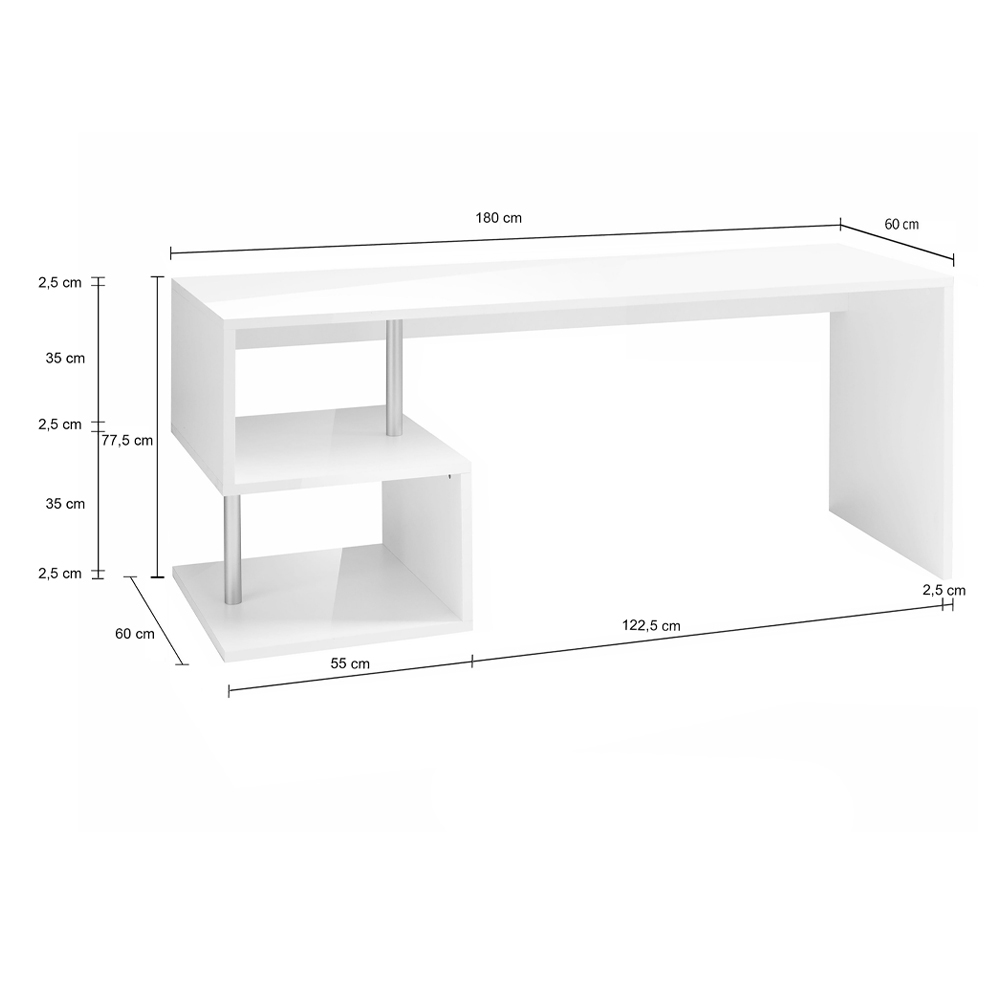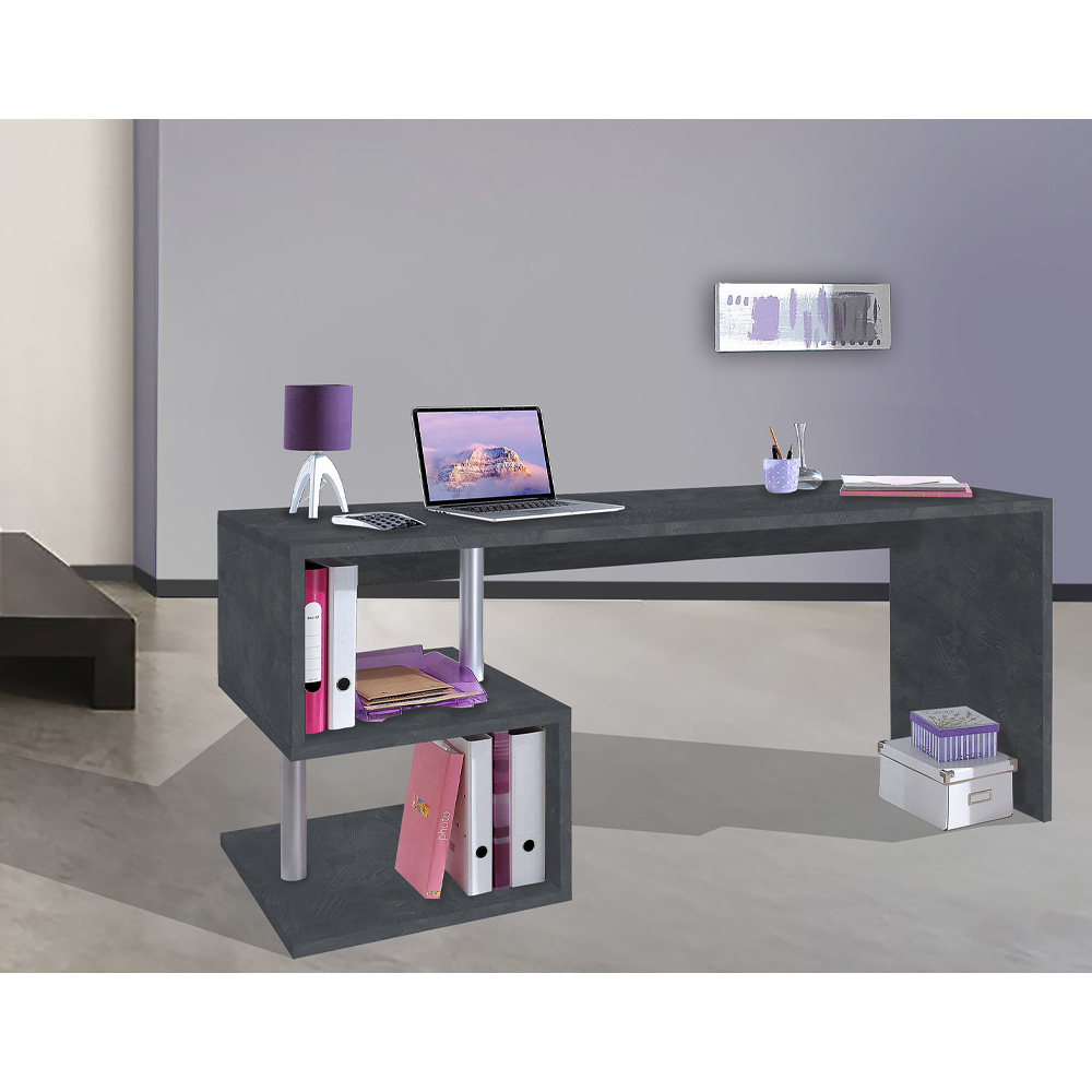 The office or study desk is characterized by its modern and puristic design with a practical side shelf in the shape of an "S" with 2 open compartments which gives the structure a particular and contemporary look.