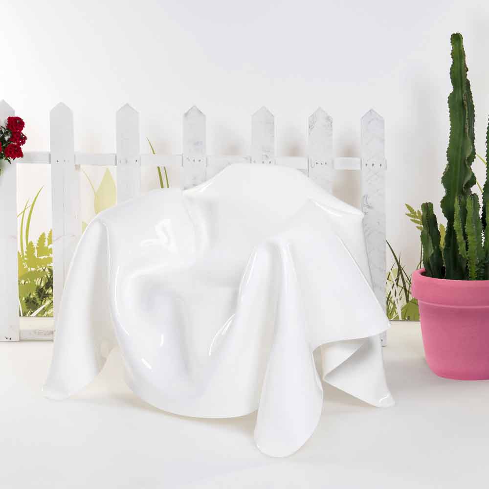 Each "Paris" armchair is a unique modern art piece. From a 100% pure PMMA white colour plexiglass sheet hand-draped, comes a unique armchair. Self-supporting, the armchair can accommodate 1 seater.