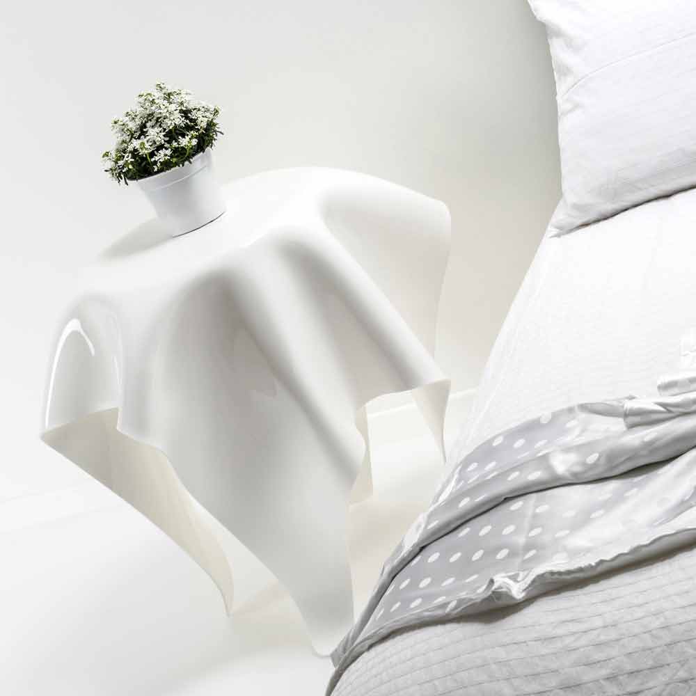 Each "Otto" table is a unique modern art piece. It comes from a 100% pure PMMA "Chanel" plexiglass sheet which has been hand-draped. Self- supporting.