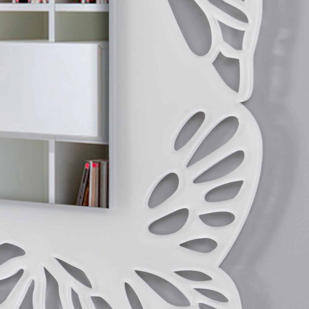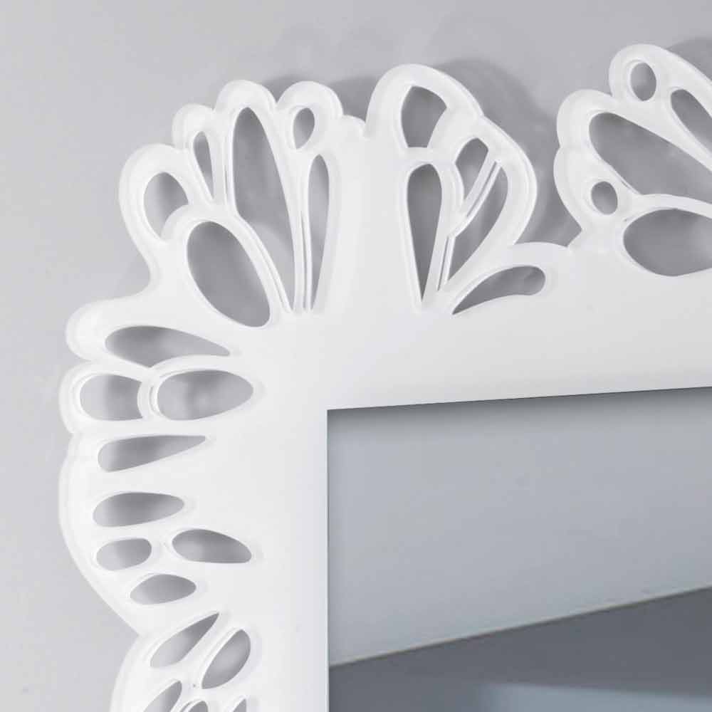 Rectangular wall mirror with decorated white frame, in modern design plexiglass made in Italy.