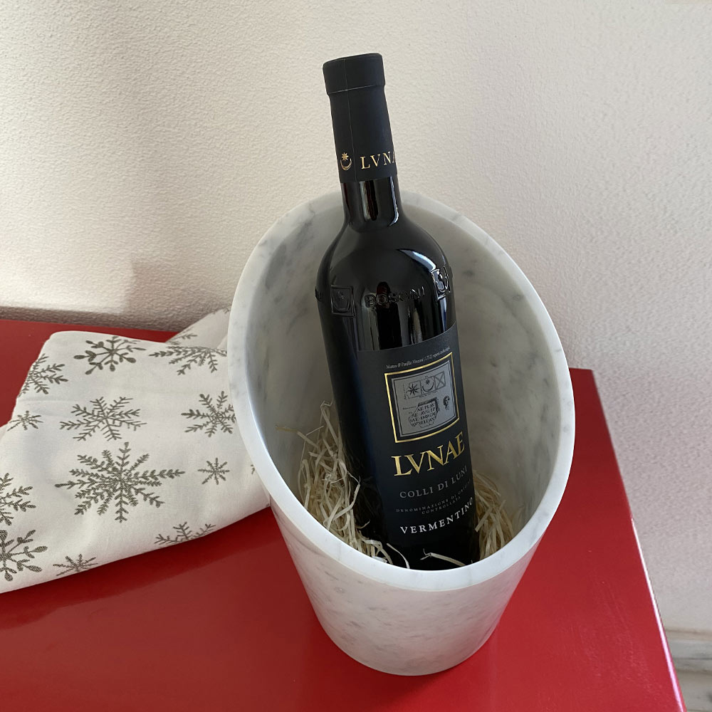 Modern glacette for wine or champagne made of white Carrara Marquinia marble Made in Italy.