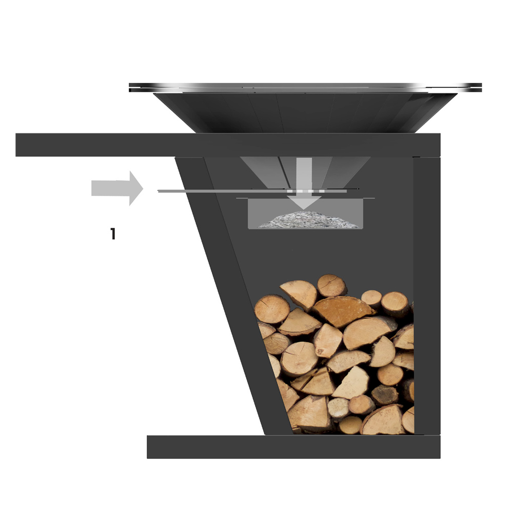 The opening system also offers the advantage of being able to unload ashes easily from below.