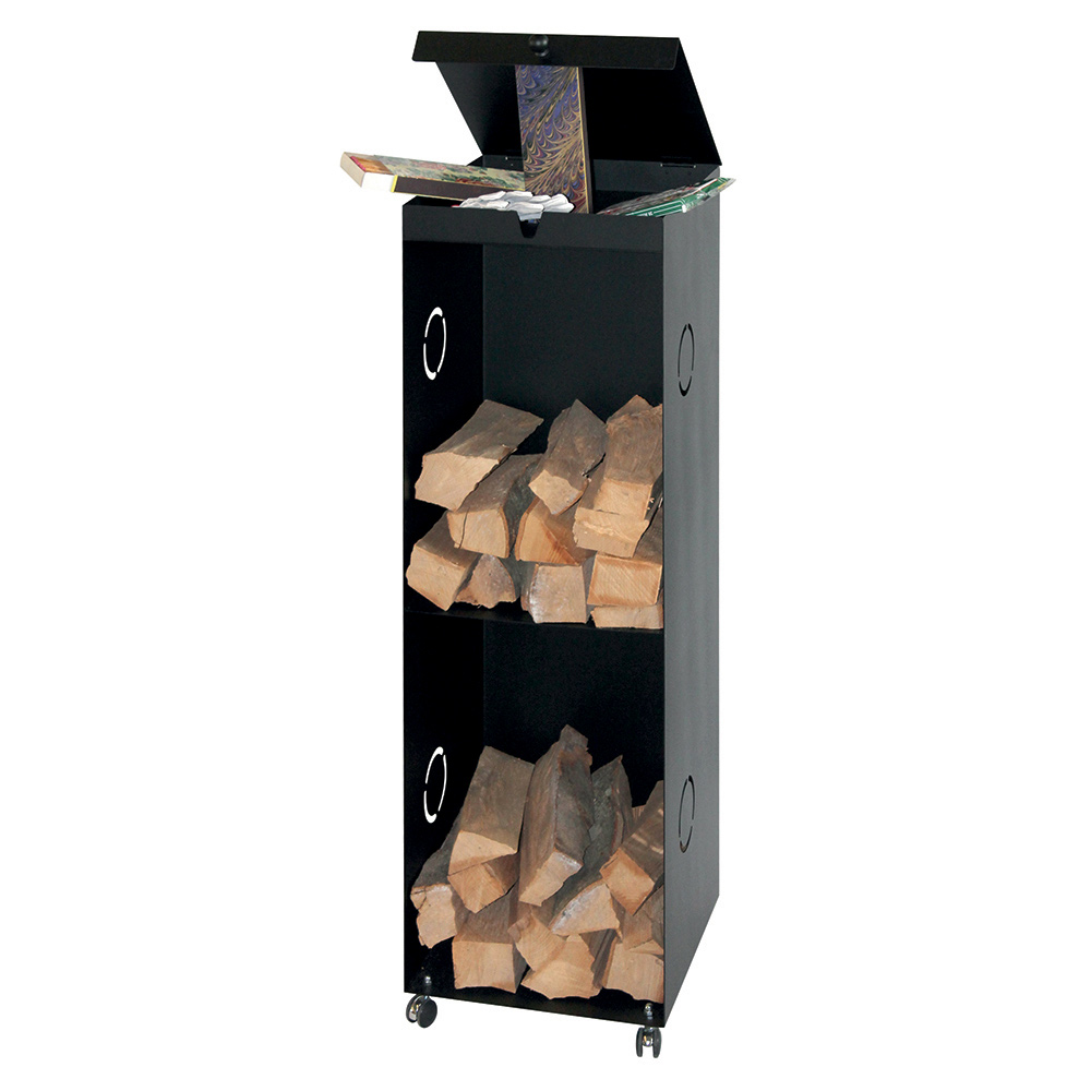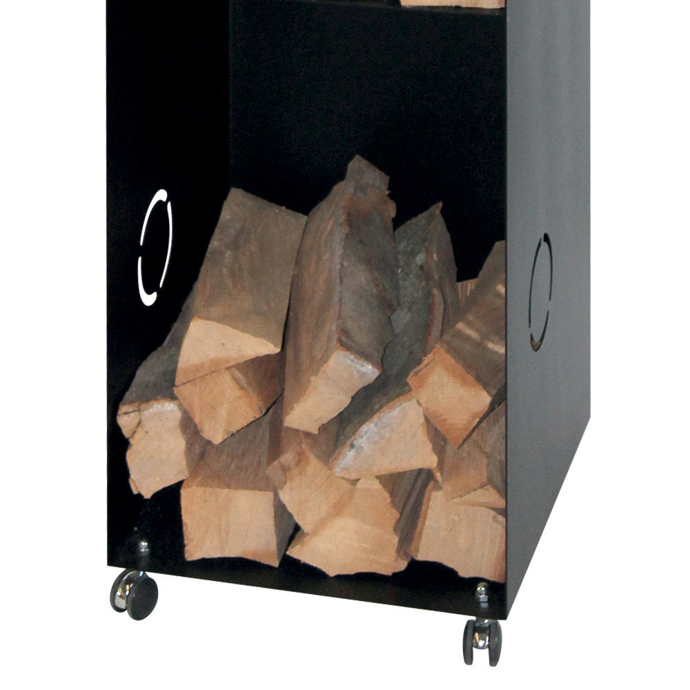 This vertical log holder is a functional and stylistically versatile addition to any fireplace setting. The slender black metal structure, equipped with wheels , offers convenience of movement and a space-saving design, while still providing a spacious storage solution for wood. The upper opening is used to store firelighters or other small accessories, while the open compartments allow you to organize the wood in an orderly manner and always have it at hand. The simple, yet elegant design fits into any interior, from rustic to modern.