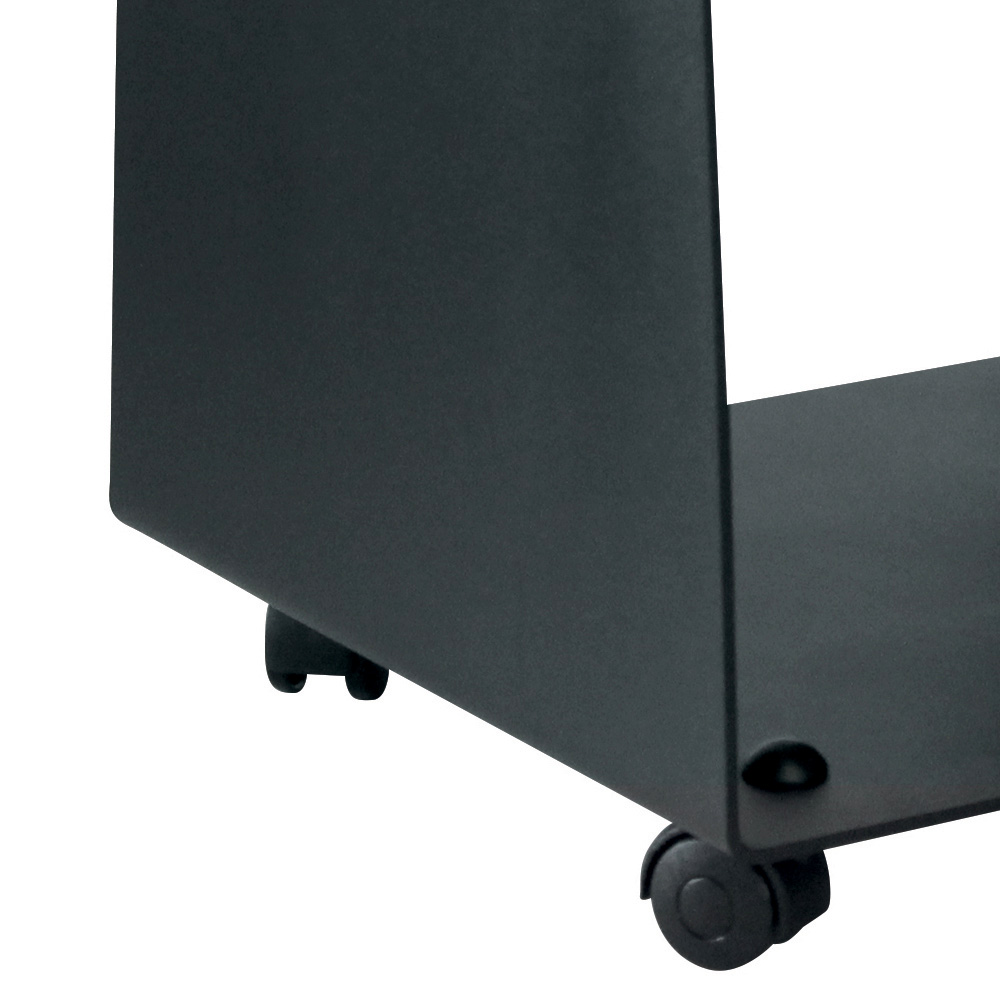 The black finish and minimalist appearance make it an elegant and versatile piece, suitable for any type of decor, from rustic to more modern. Equipped with wheels , this wood holder is extremely practical, allowing you to easily move wood from one room to another effortlessly. Its open design allows you to store wood in an organized manner and easily access it, while the integrated handles make it easy to transport and handle.