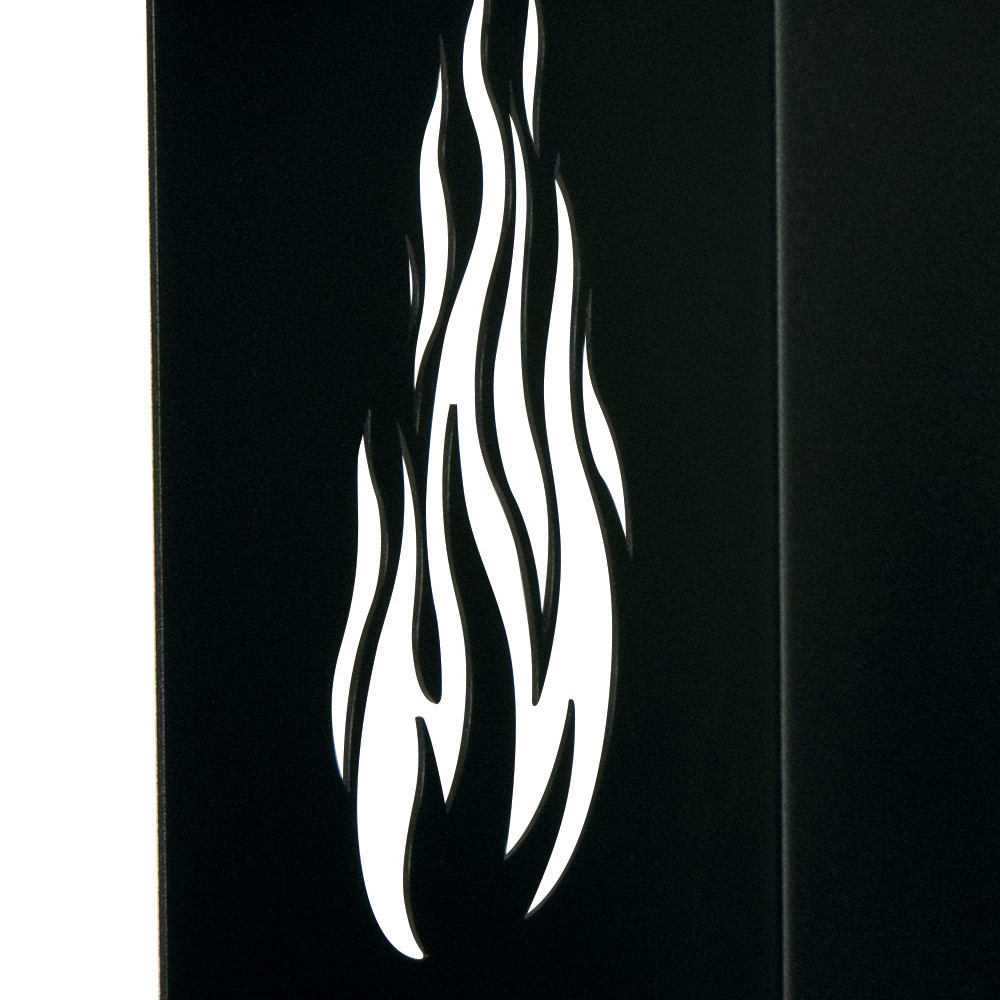 This metal log holder combines practical functionality with an attractive design to enrich the space of your fireplace. The black structure is resistant and sturdy, designed to accommodate a generous amount of wood. The flame cuts on the sides not only serve as decorative elements but also ensure correct ventilation, essential for keeping the wood dry.