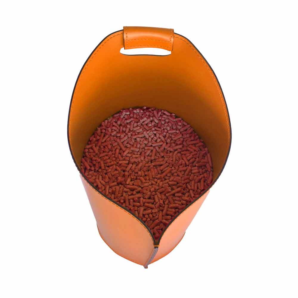 This fantastic pellet holder with an original shape is made of leather, available in different chromatic variations, with plywood bottom able to increase its resistance.