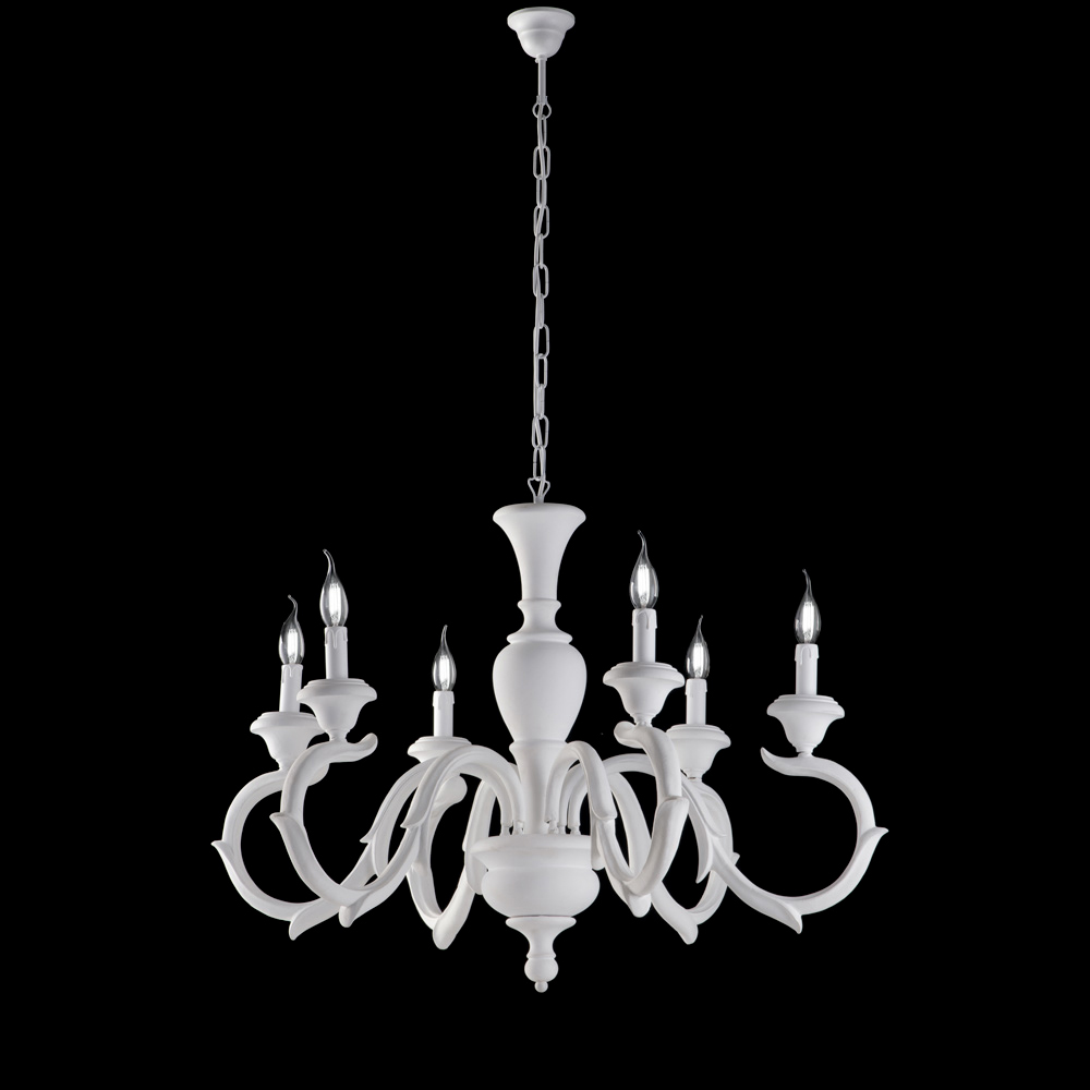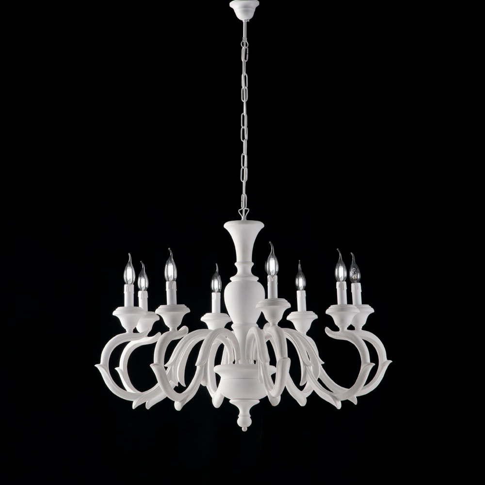 Available in the fine Shabby White or Ivory/Gold Leaf finishes, this chandelier represents a highly prestigious choice for living rooms, dining rooms, grand entrances, and reception areas . The candle-style lights spread a warm, enveloping glow, enhancing the space with discreet opulence.