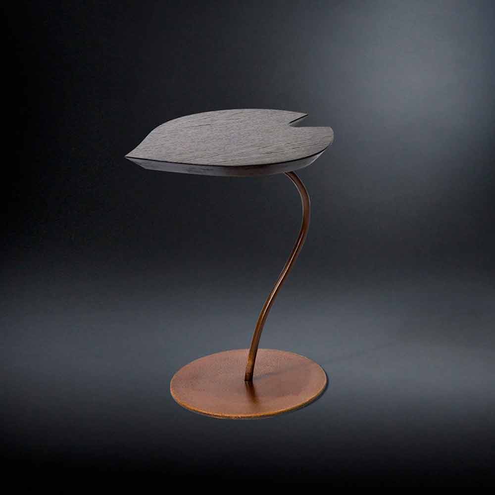 Wooden coffee table Leaf with iron base.