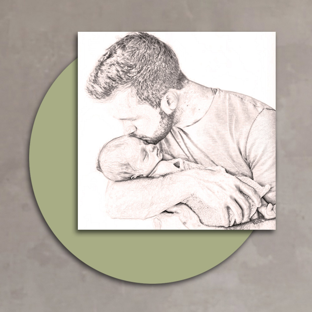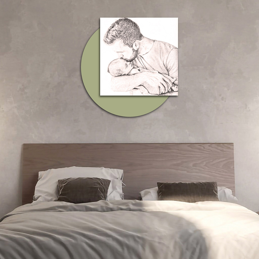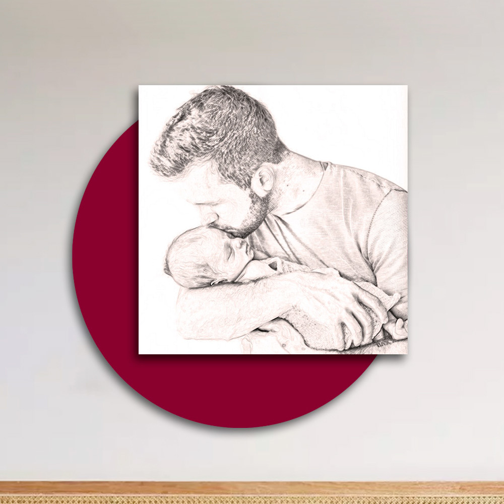 kiss from the father on the forehead of the son are unique and reach straight to the heart of those who watch it. The finishes, the wood chosen for the production and the printing technique highlight all the