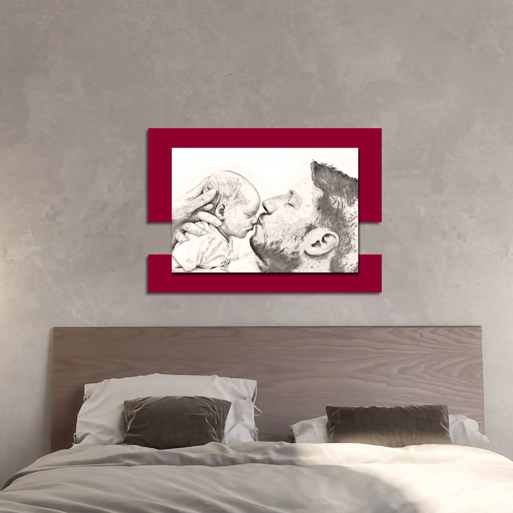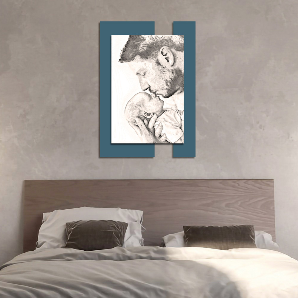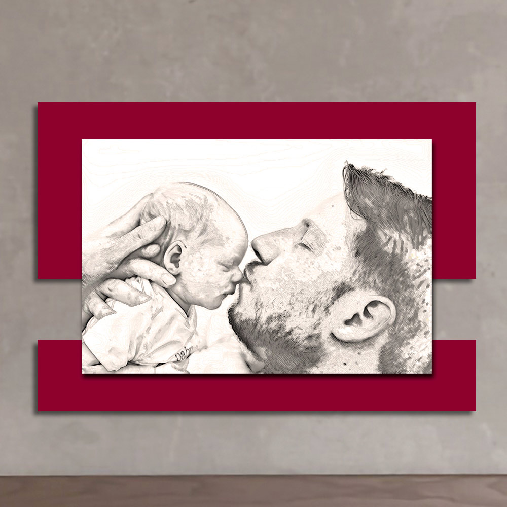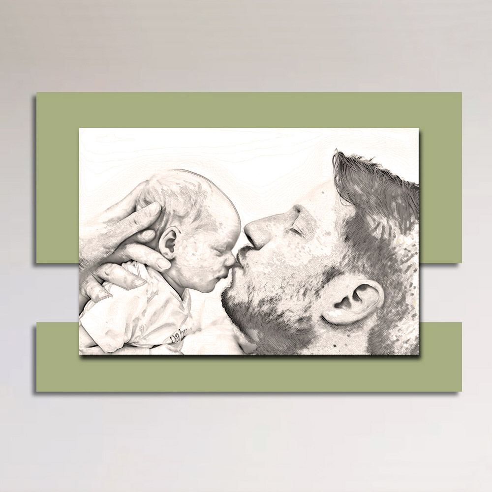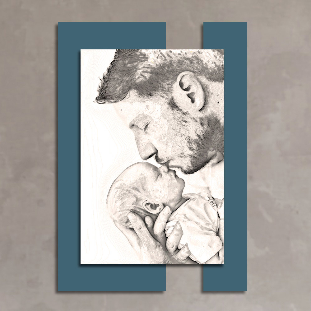 both horizontally and vertically. The protection and love of a father towards his son are conveyed with intensity by this painting, in the