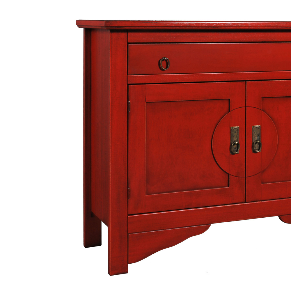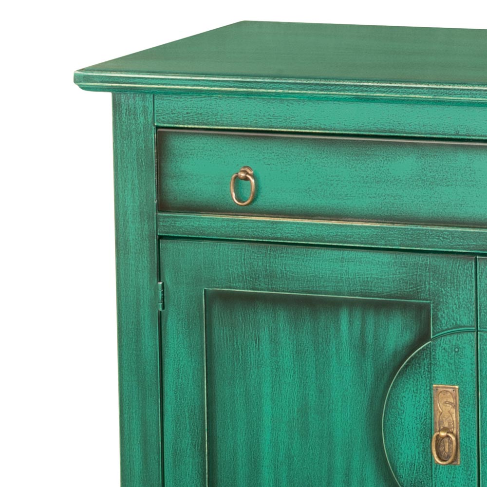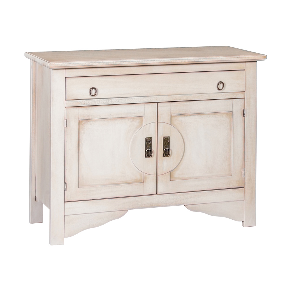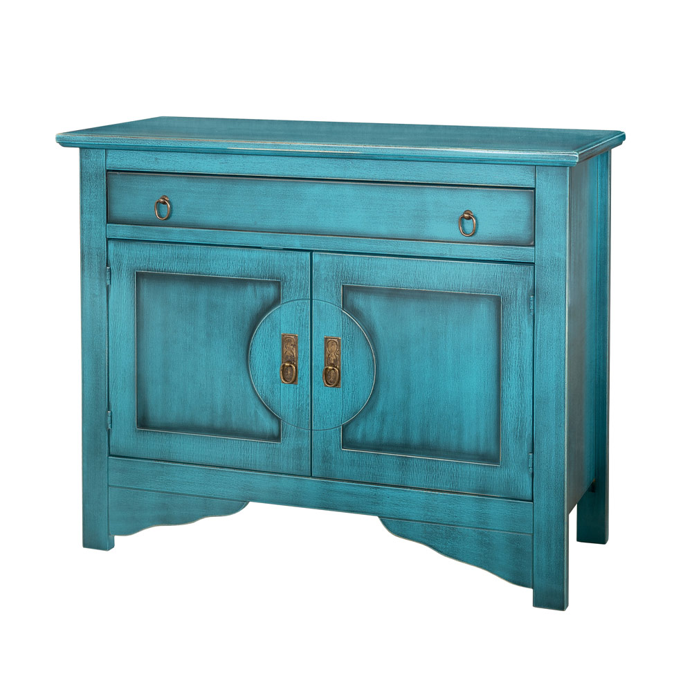 Indoor sideboard with structure in toulipier veneered wood particles and plywood and MDF bottom with 2 doors and 1 drawer.