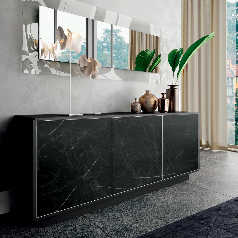 Sideboard in lacquered wood with marble effect HPL laminate doors Made in Italy.