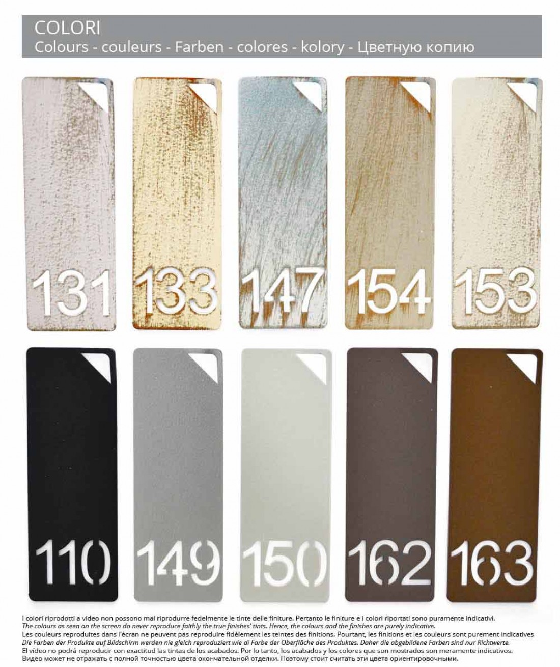 ANY COLOUR AVAILABLE. ADDITIONAL CHARGE FOR COLOURS NOT INCLUDED IN THE COLOUR CHART: + 15 %